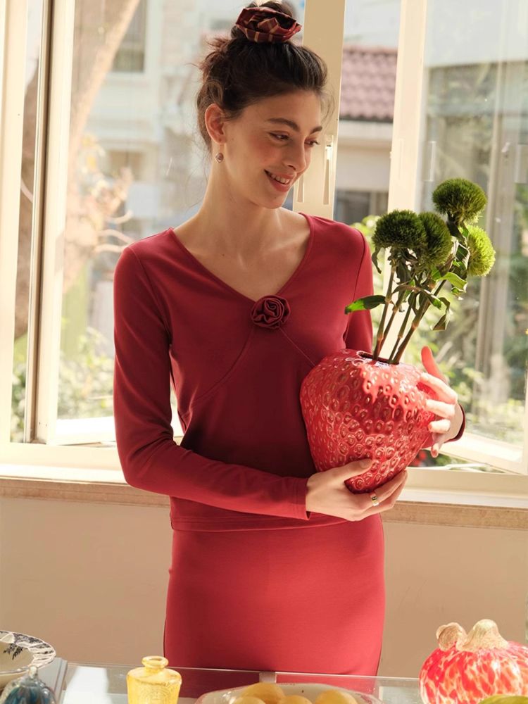 Floral V-Neck Slim Top