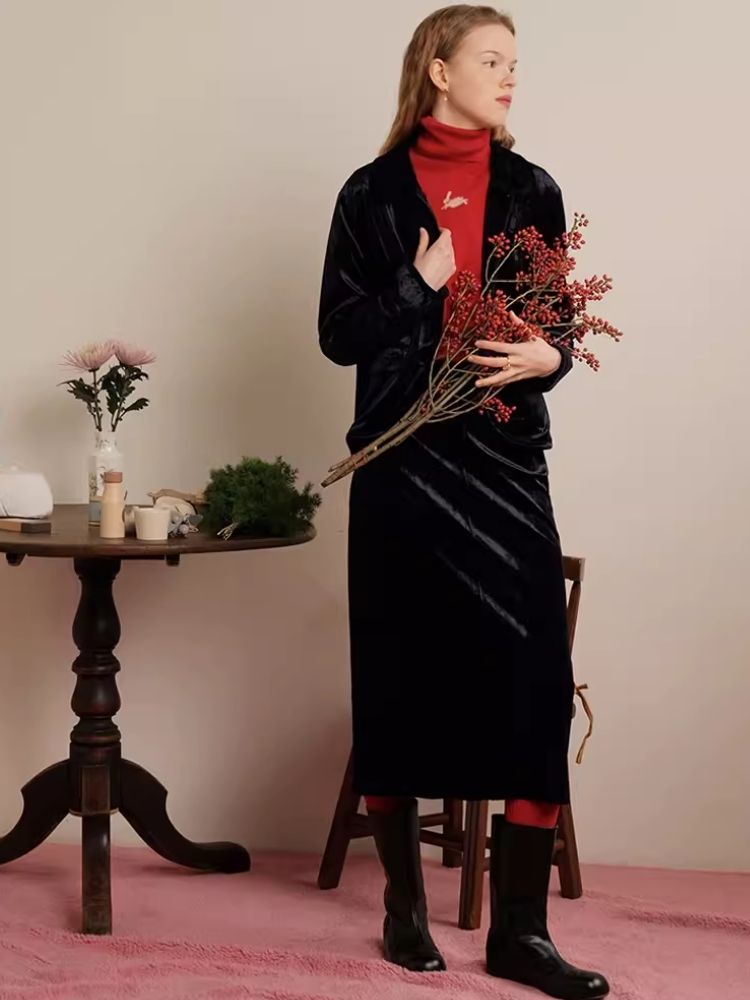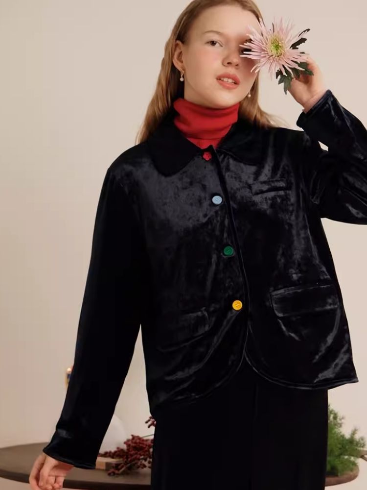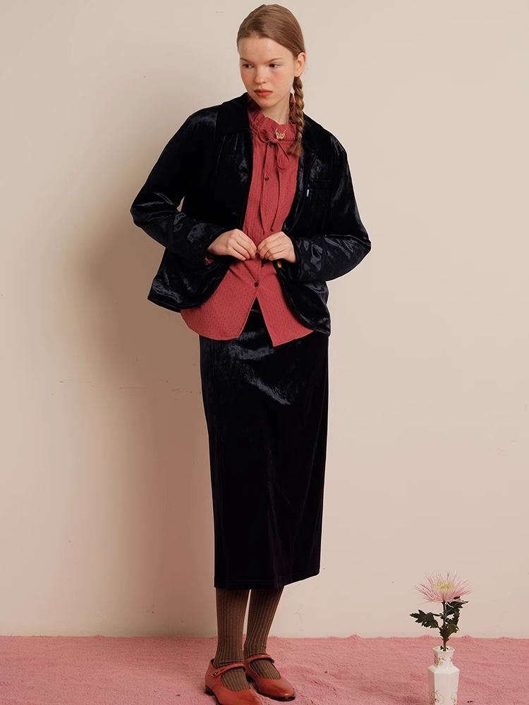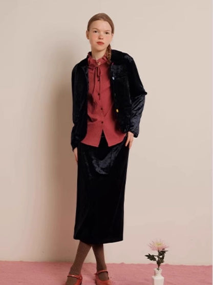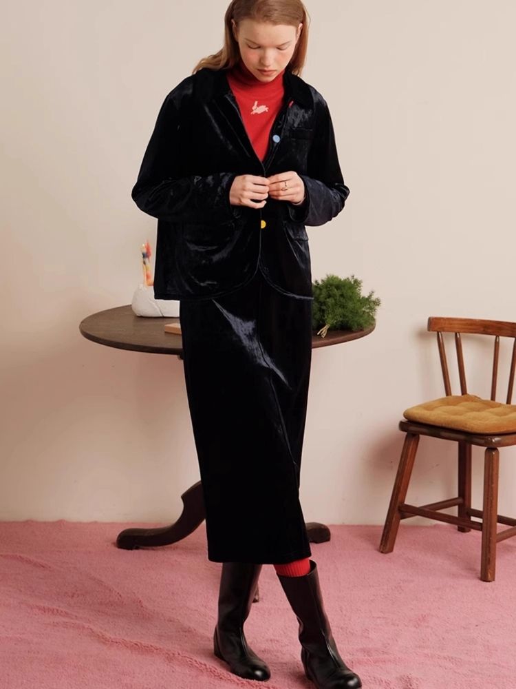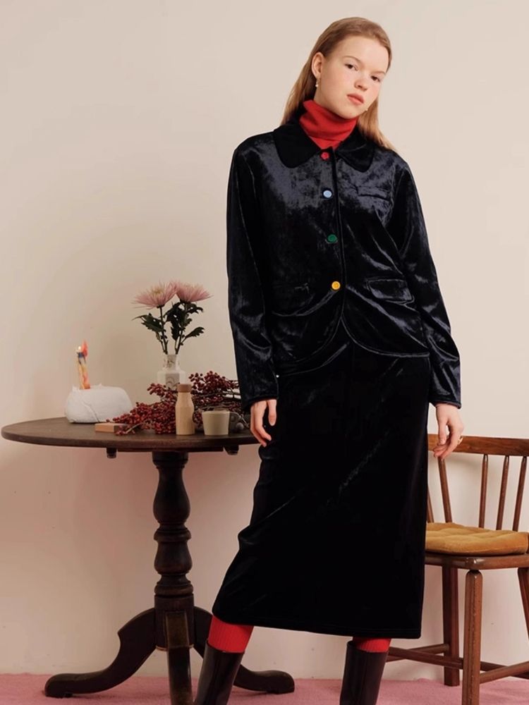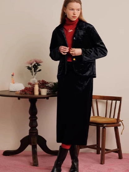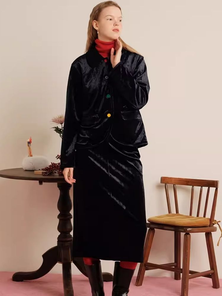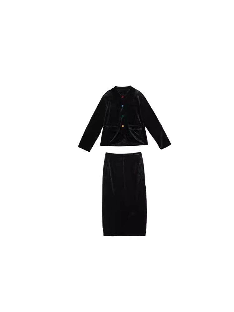 Sleek Ink Blue Soft Glossy Little Jacket Set