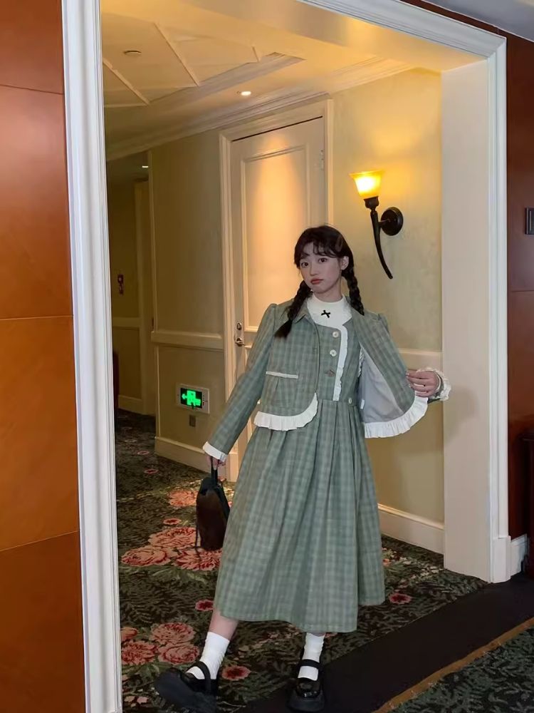 Contrast Panel Tank Dress & Jacket Set