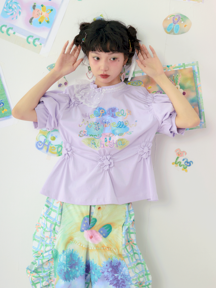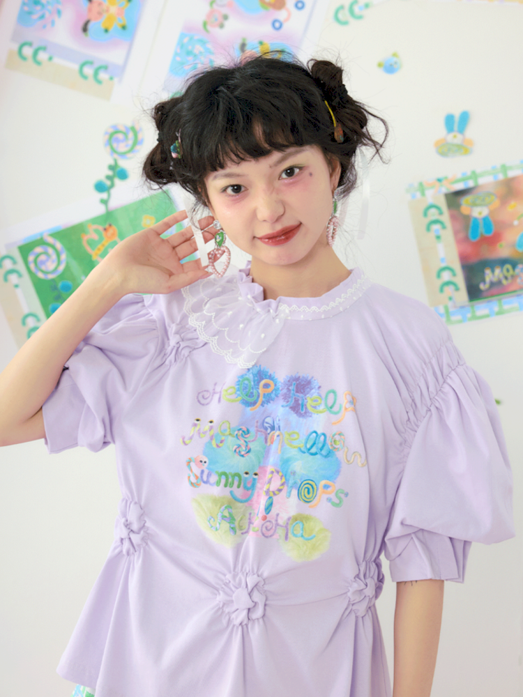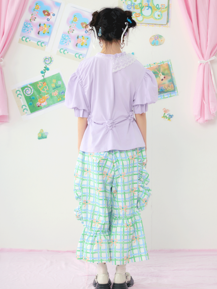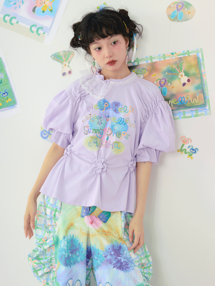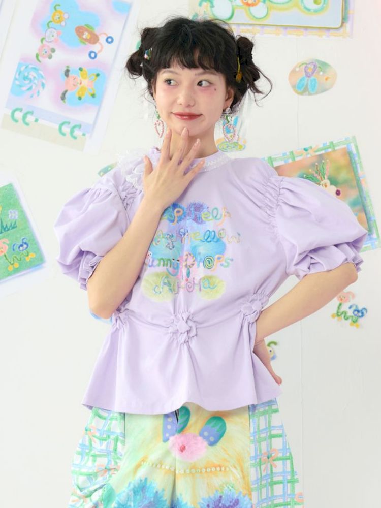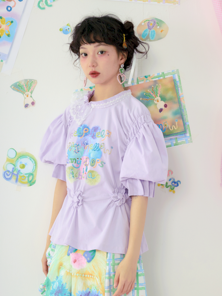 Lace Bubble Sleeve Purple Cute Tee