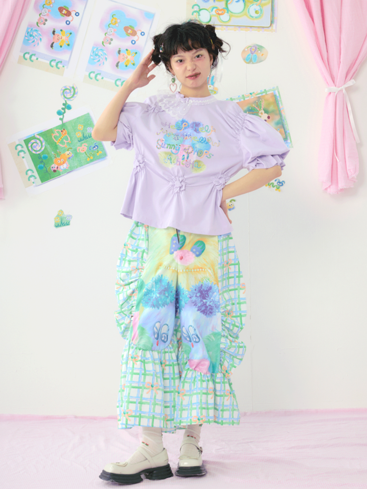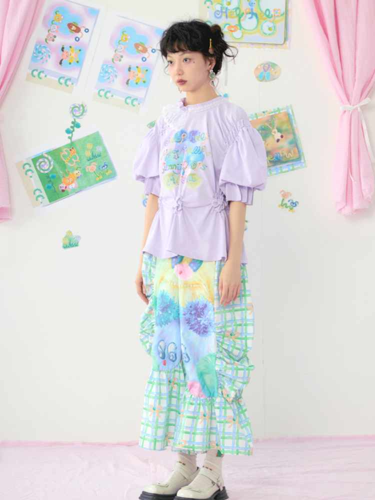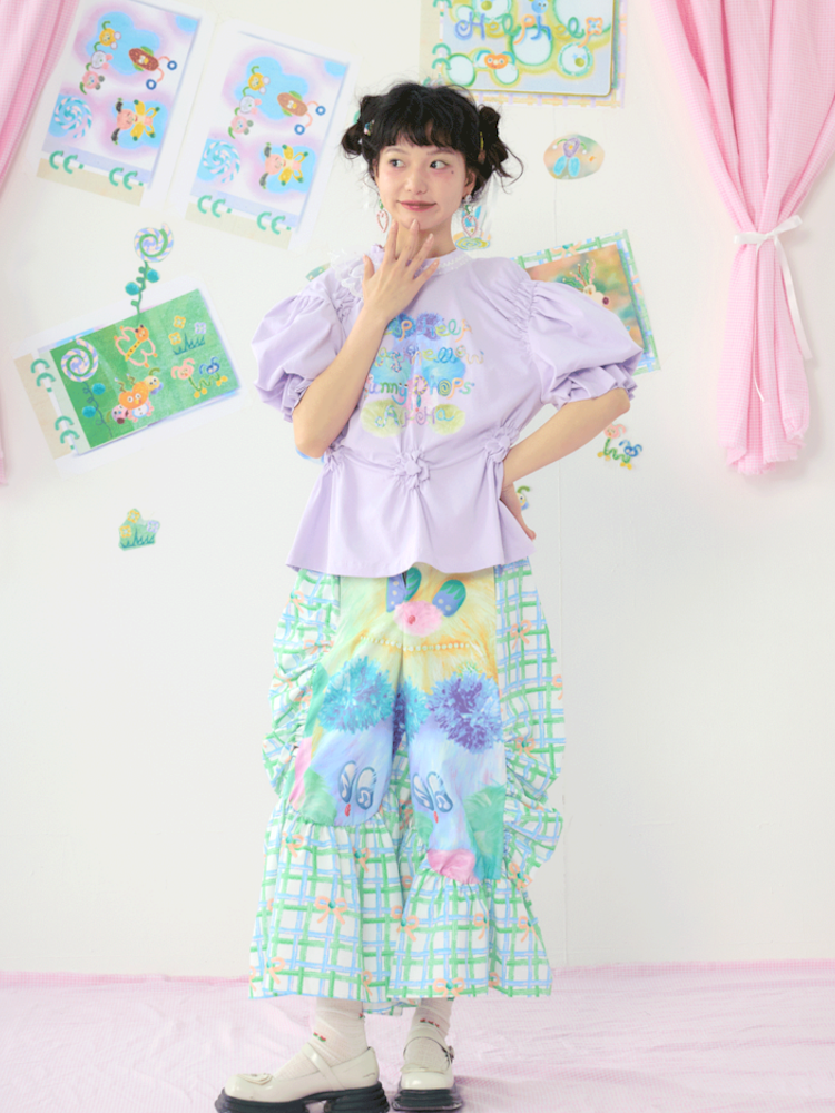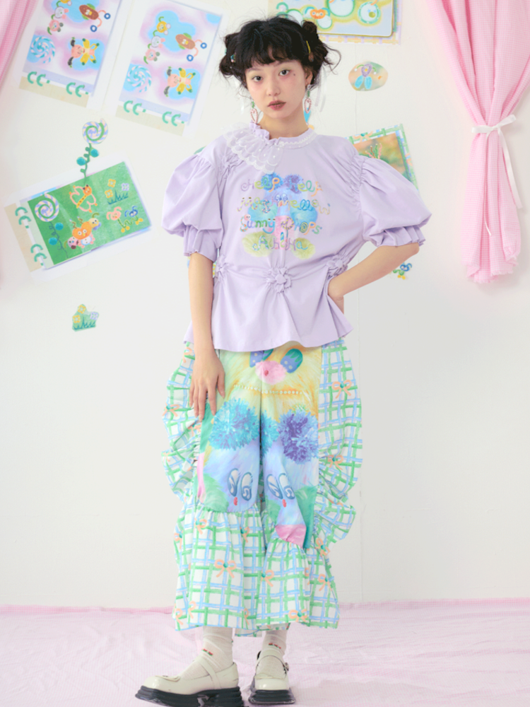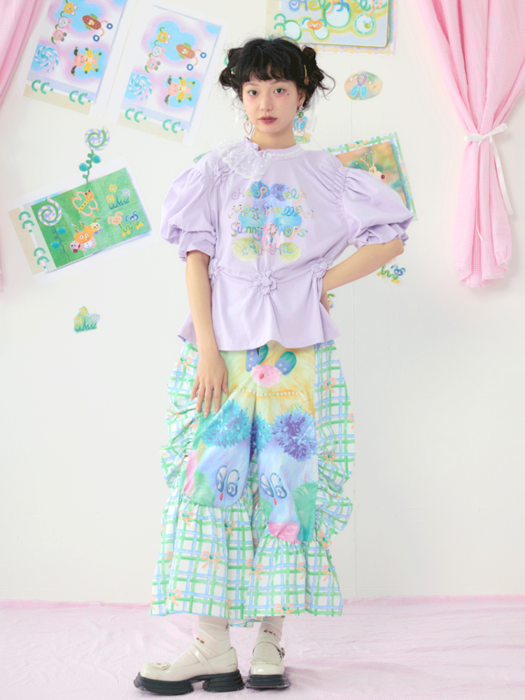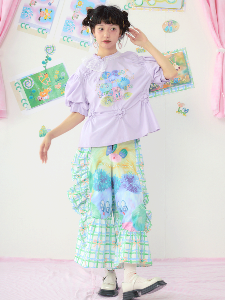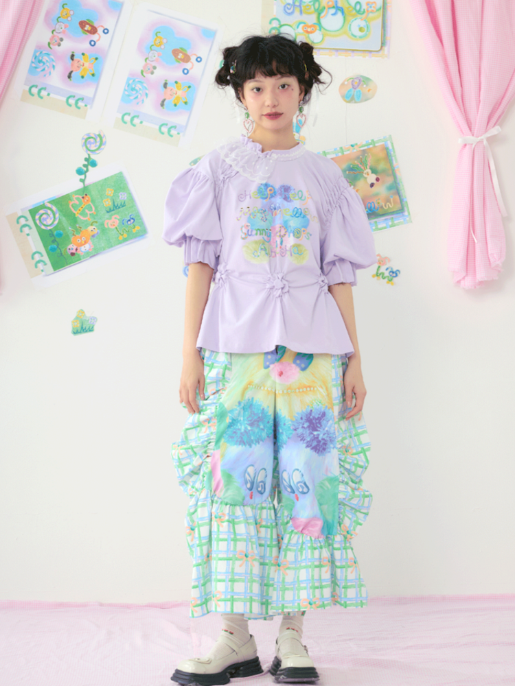 Lace Bubble Sleeve Purple Cute Tee