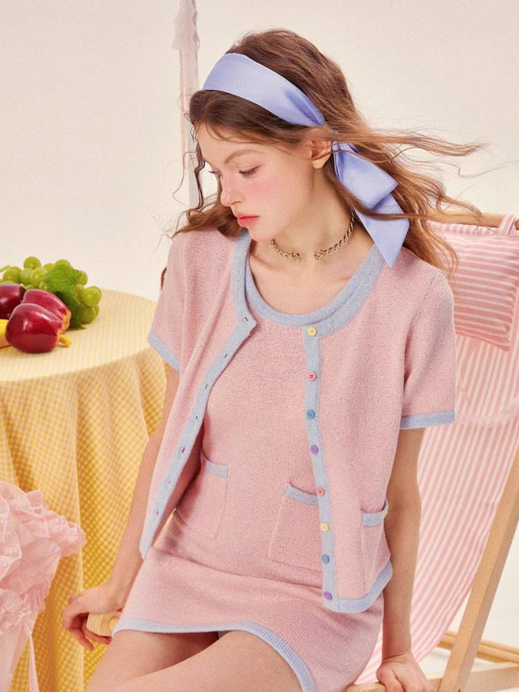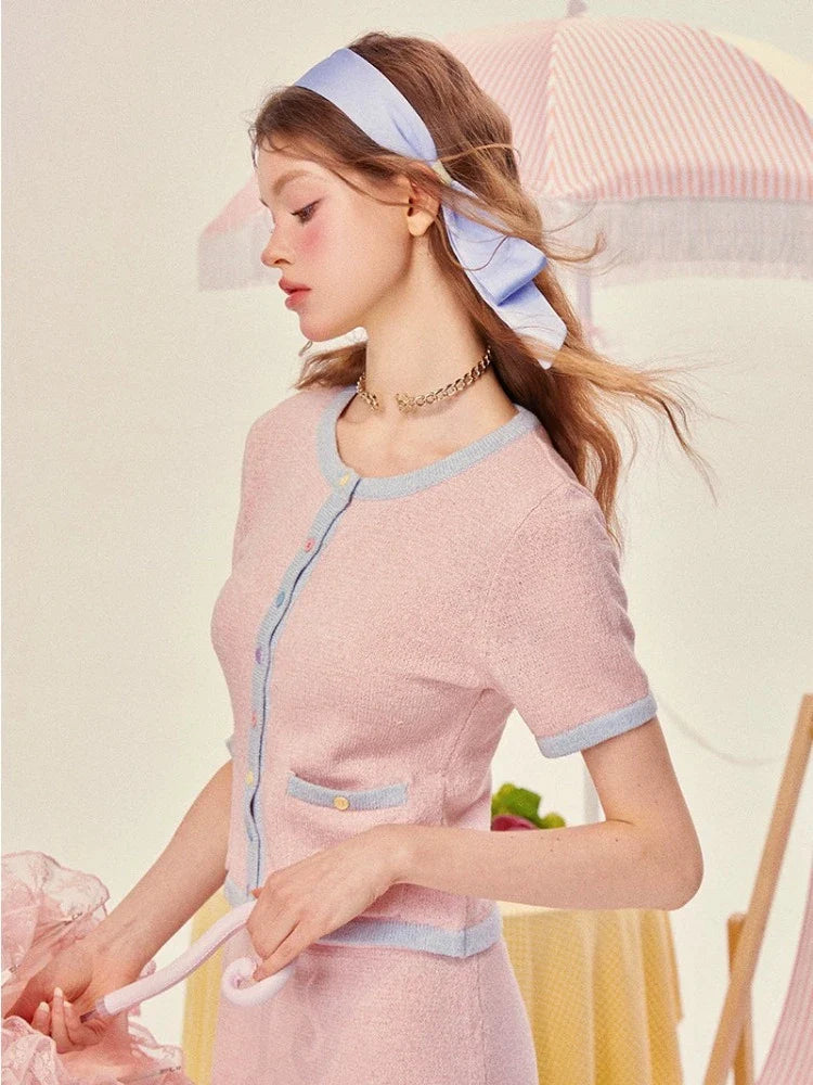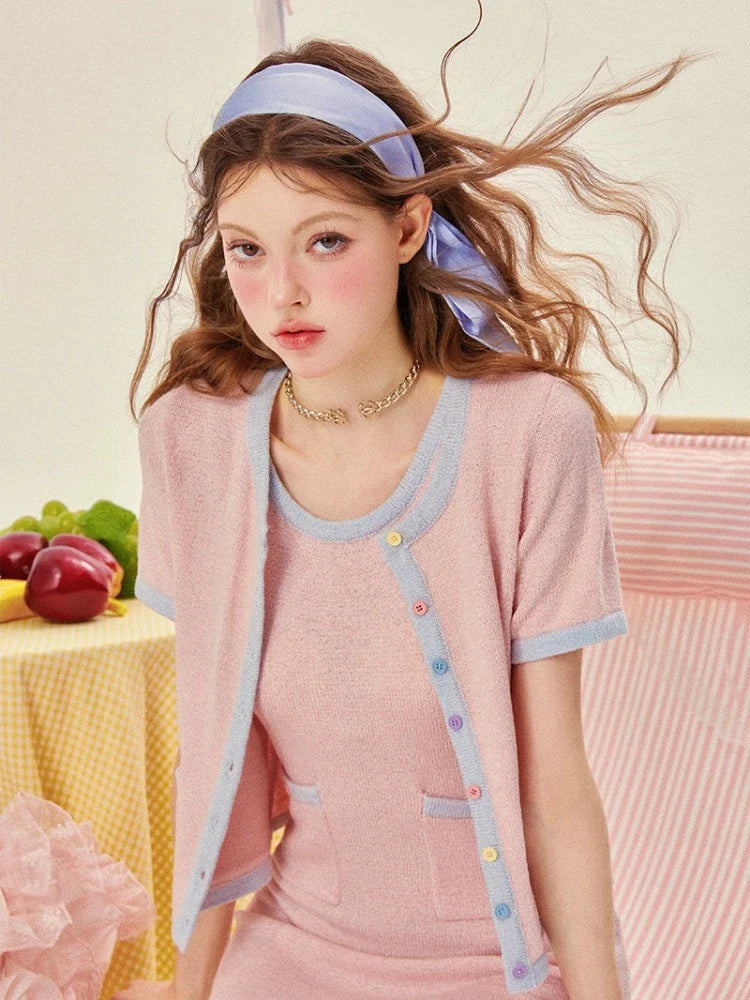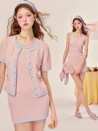 Sweet Short Sleeve Knit Cardigan & Dress Set