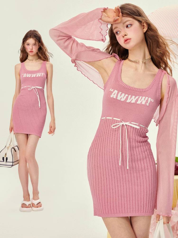 Raspberry Slim Fit Knit Dress