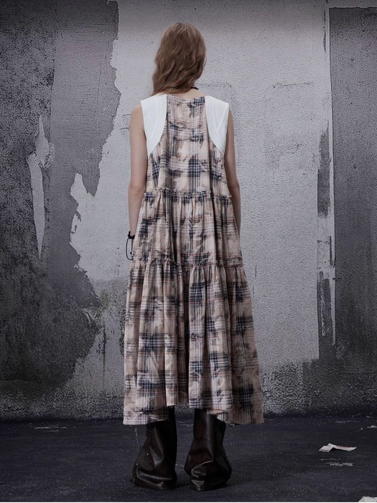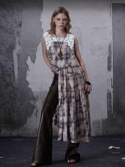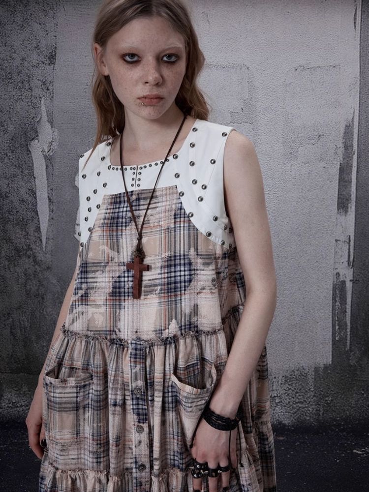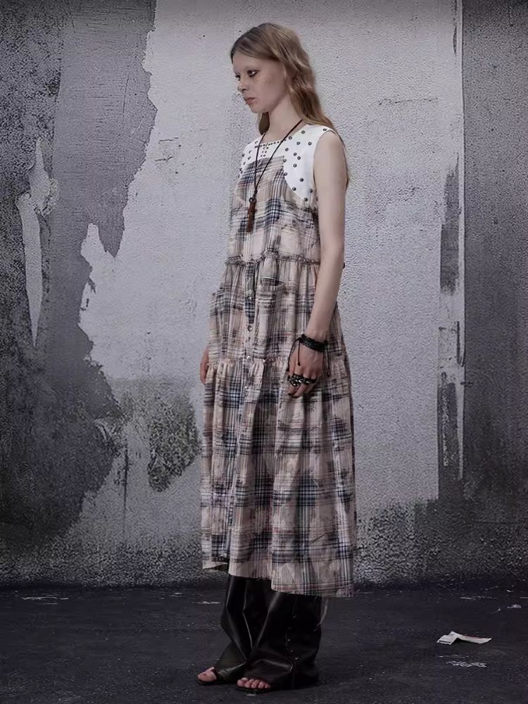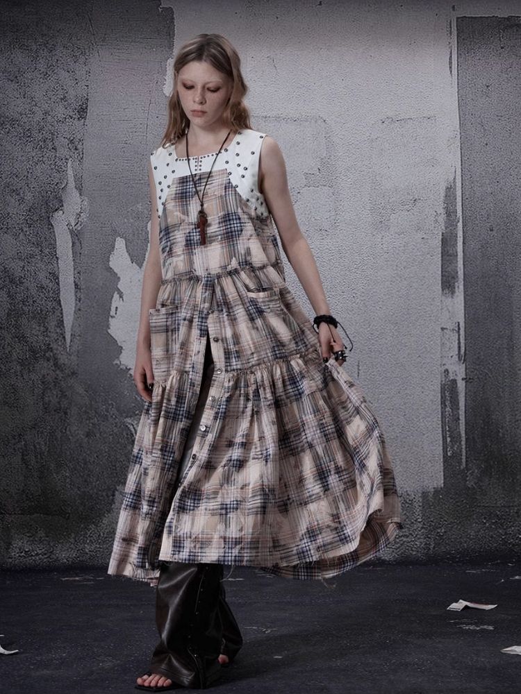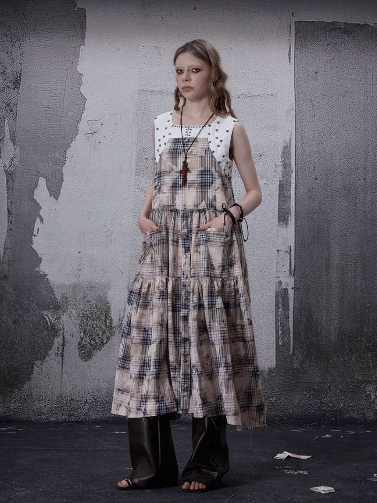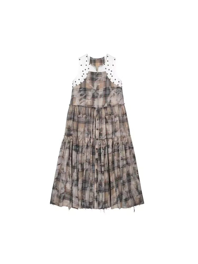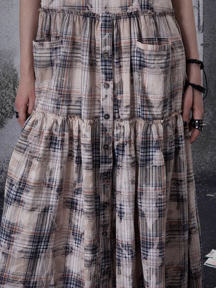 Distressed Retro Plaid American Dress