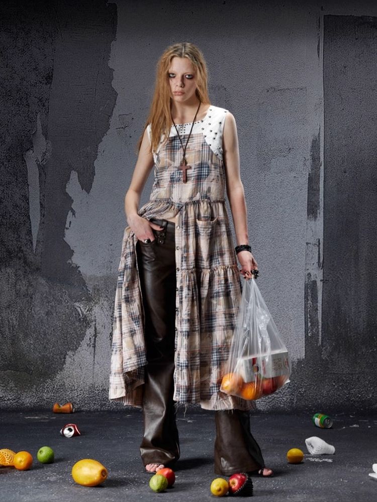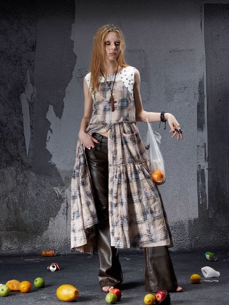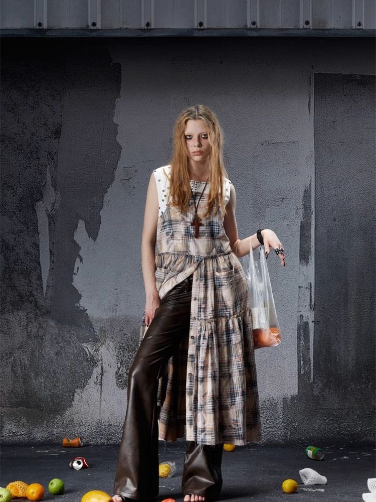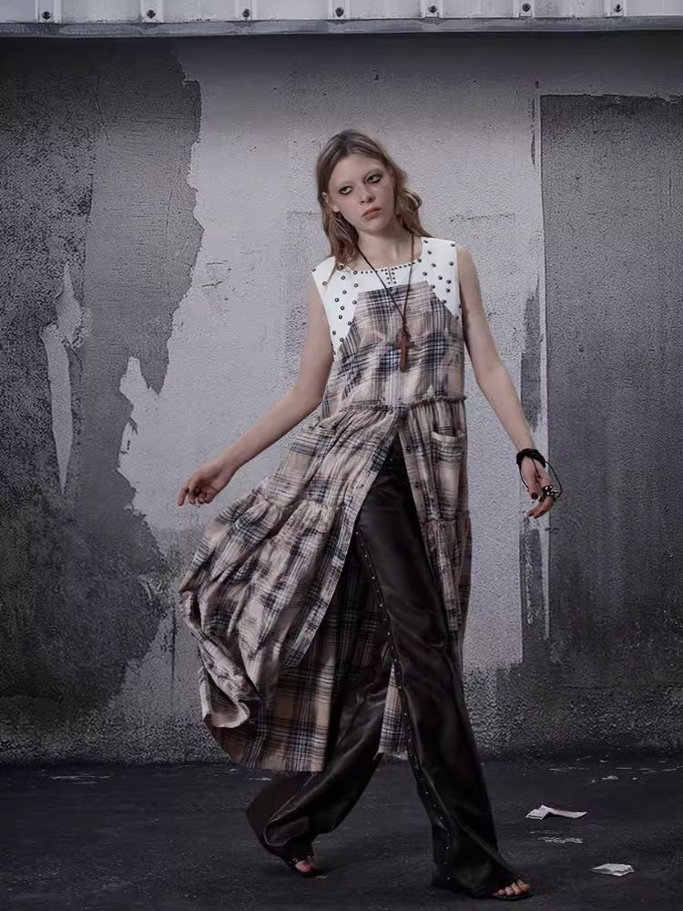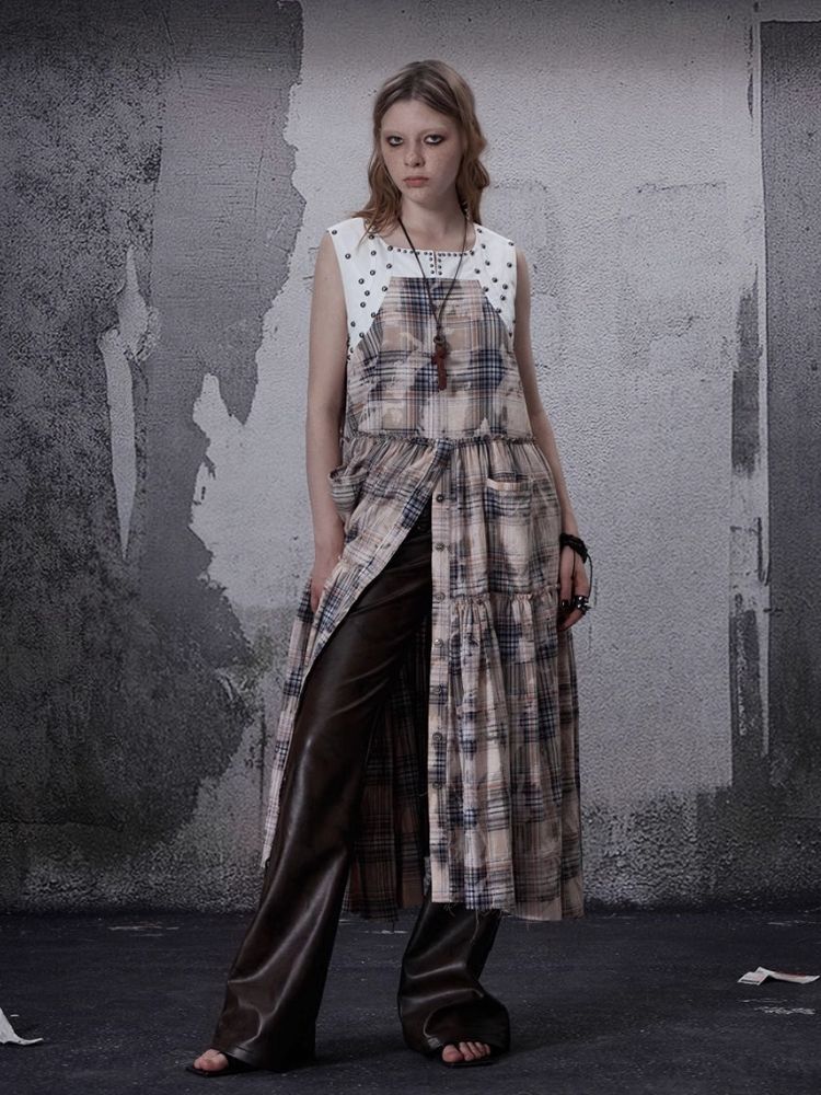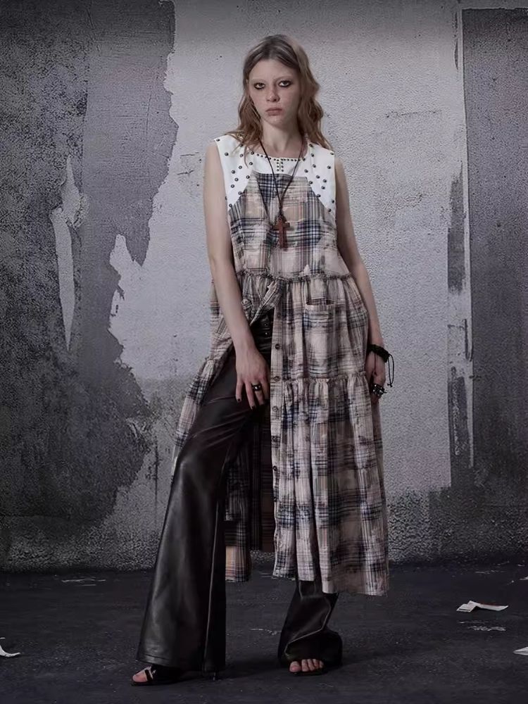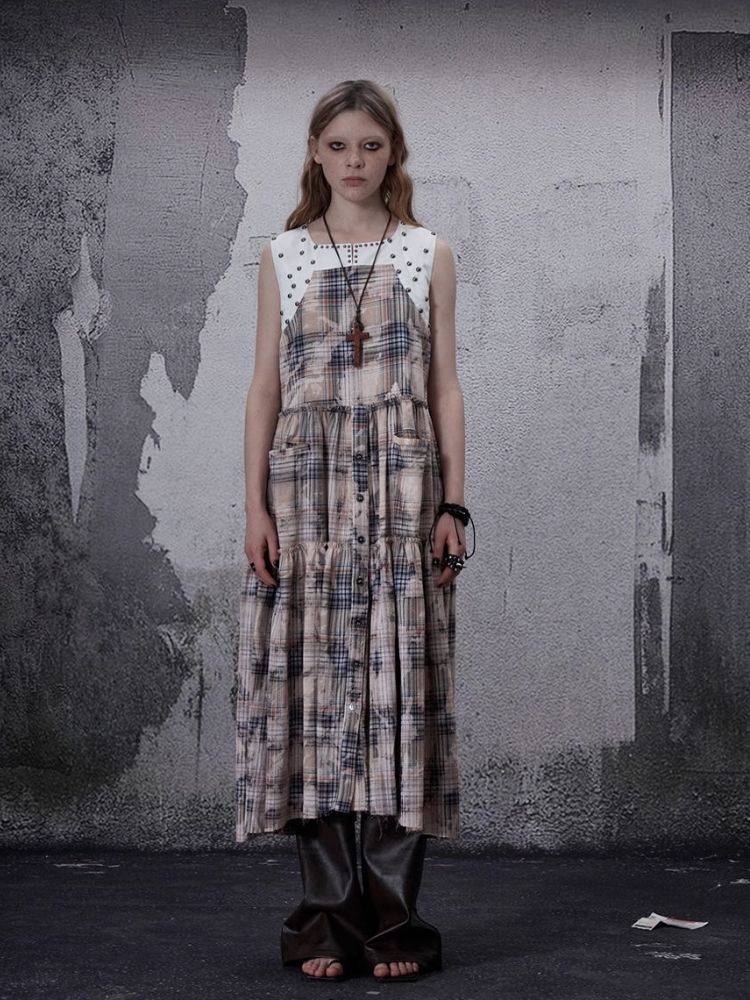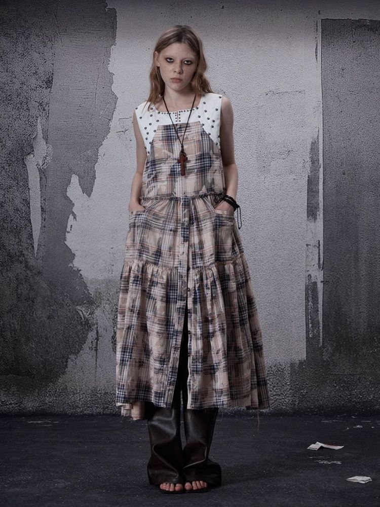 Distressed Retro Plaid American Dress