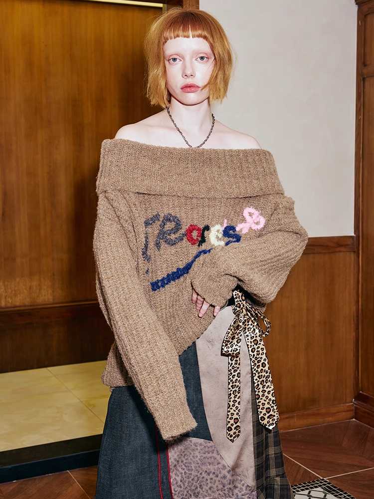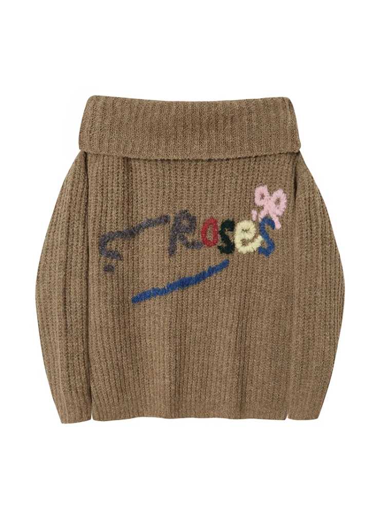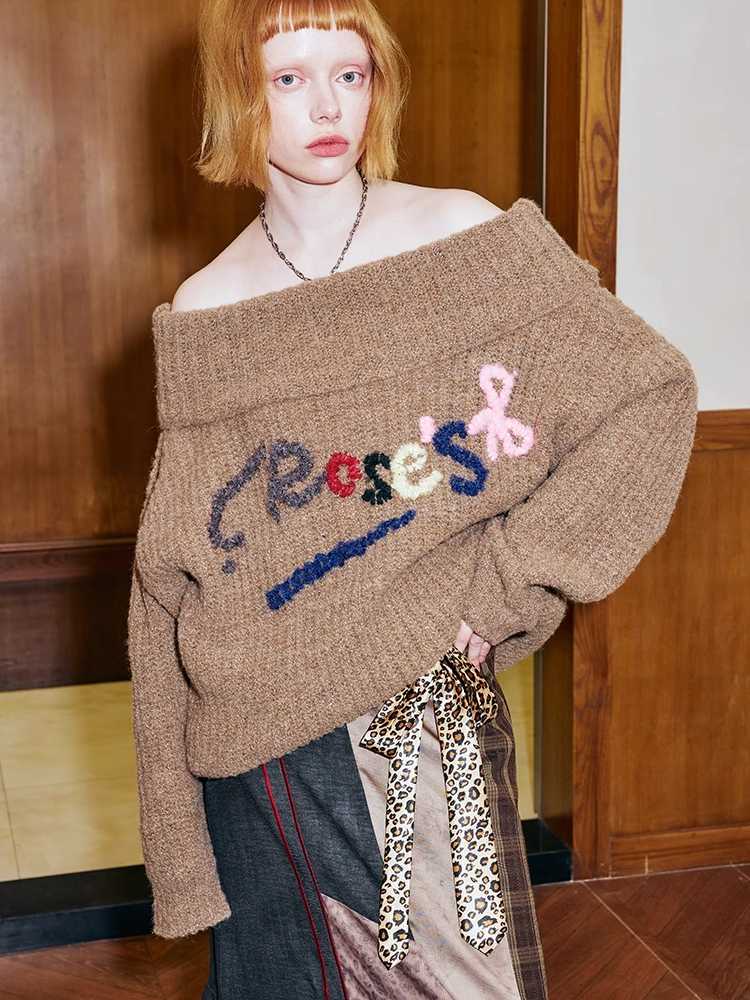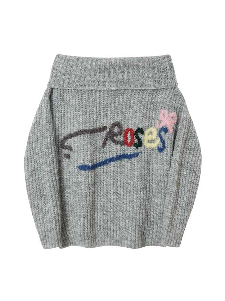 one-shoulder colorful hand-embroidered sweater