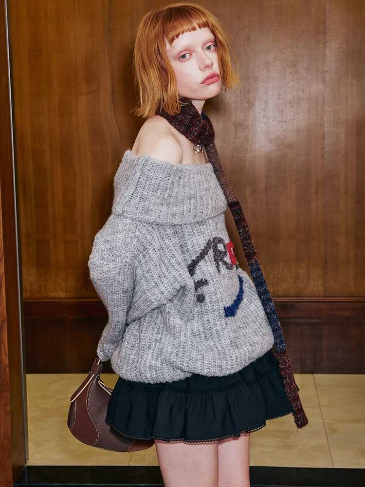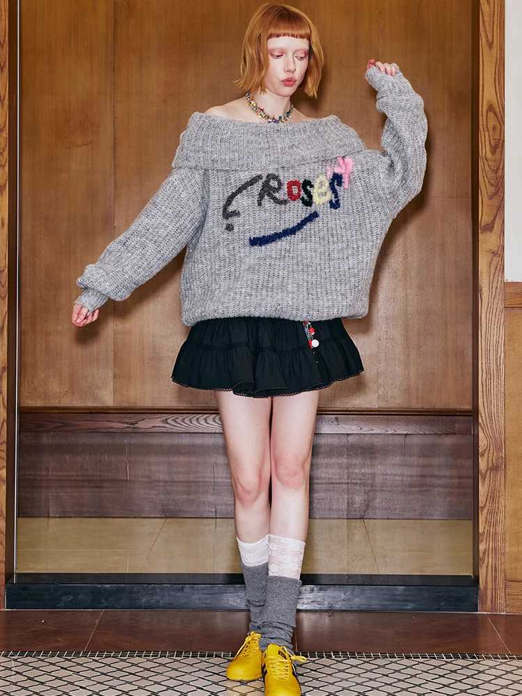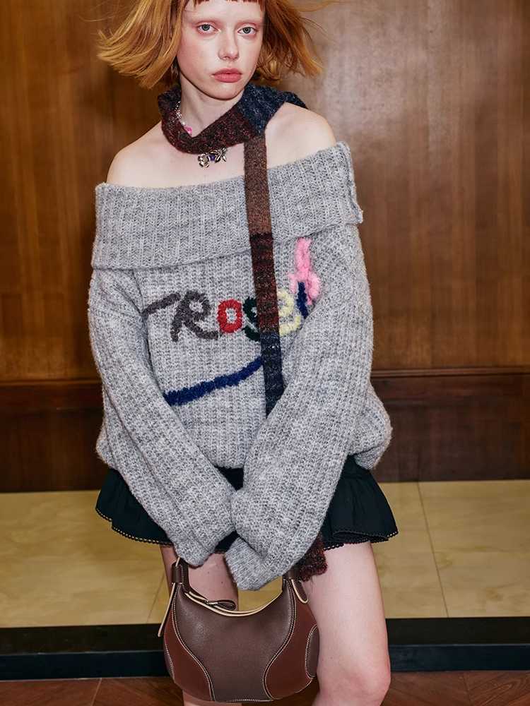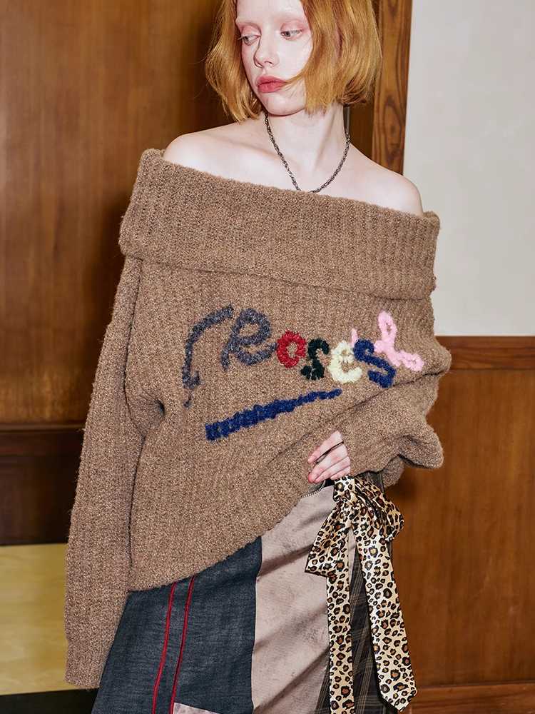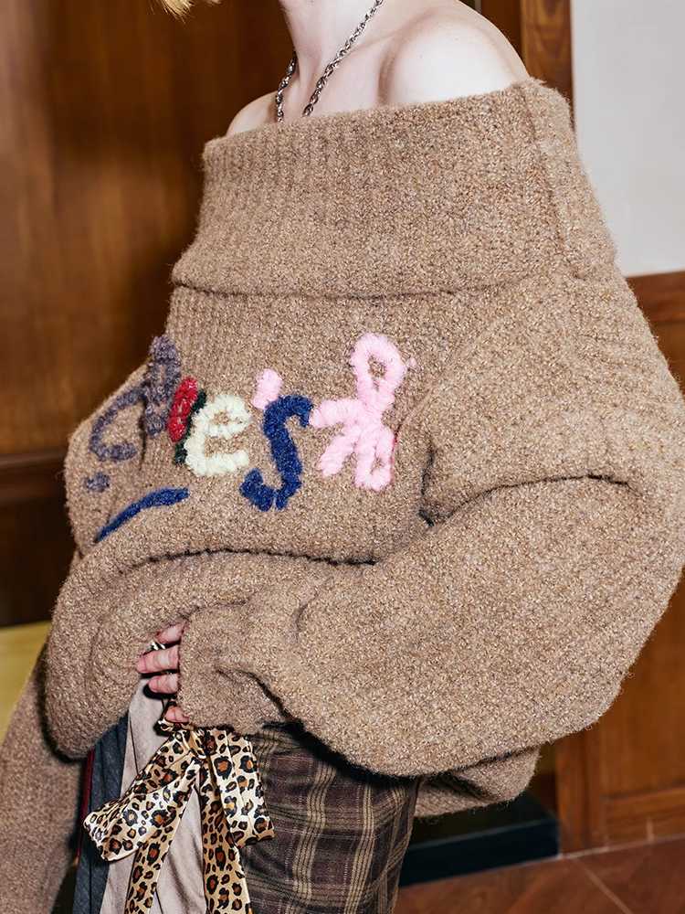 one-shoulder colorful hand-embroidered sweater