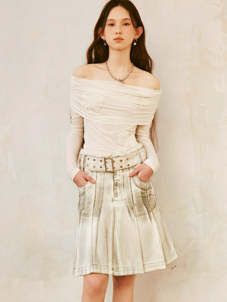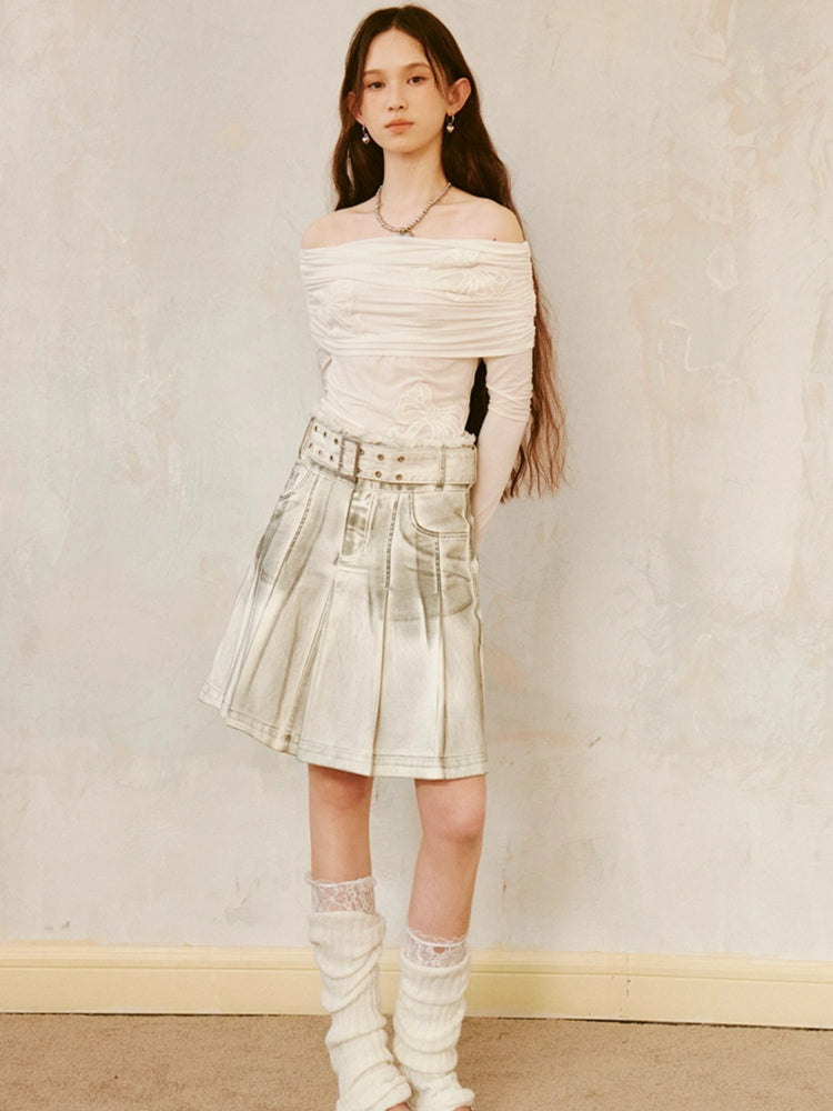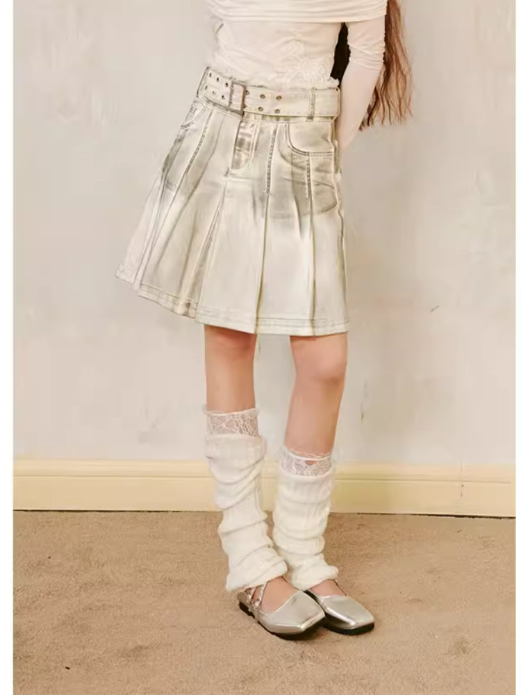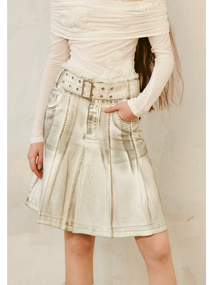 dirty rubbed color pleated skirt