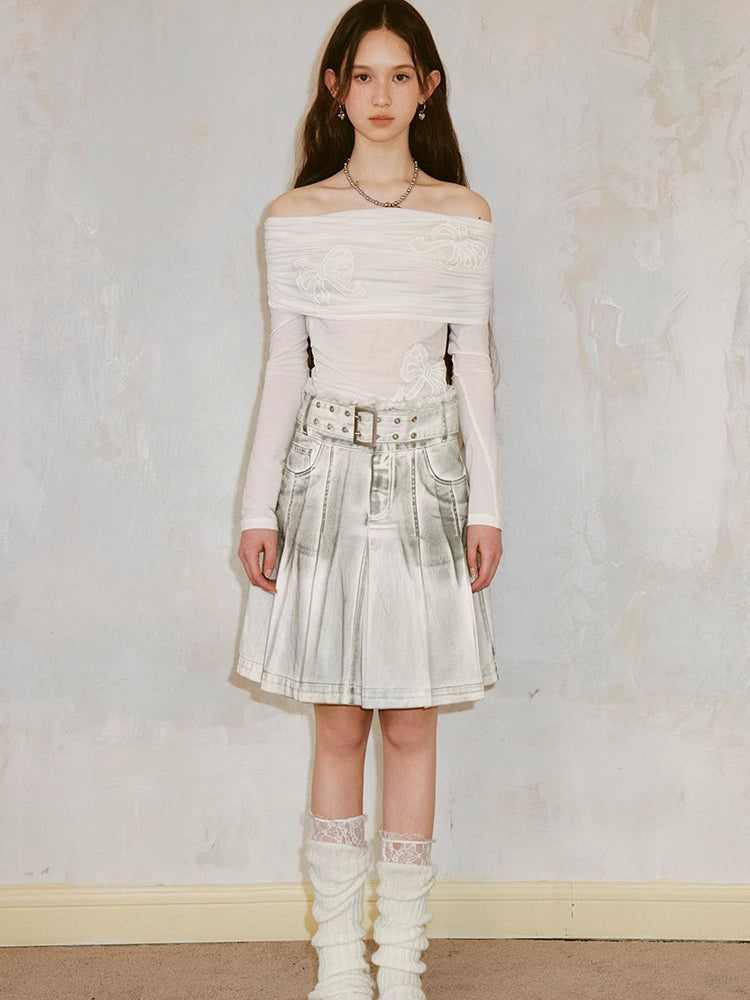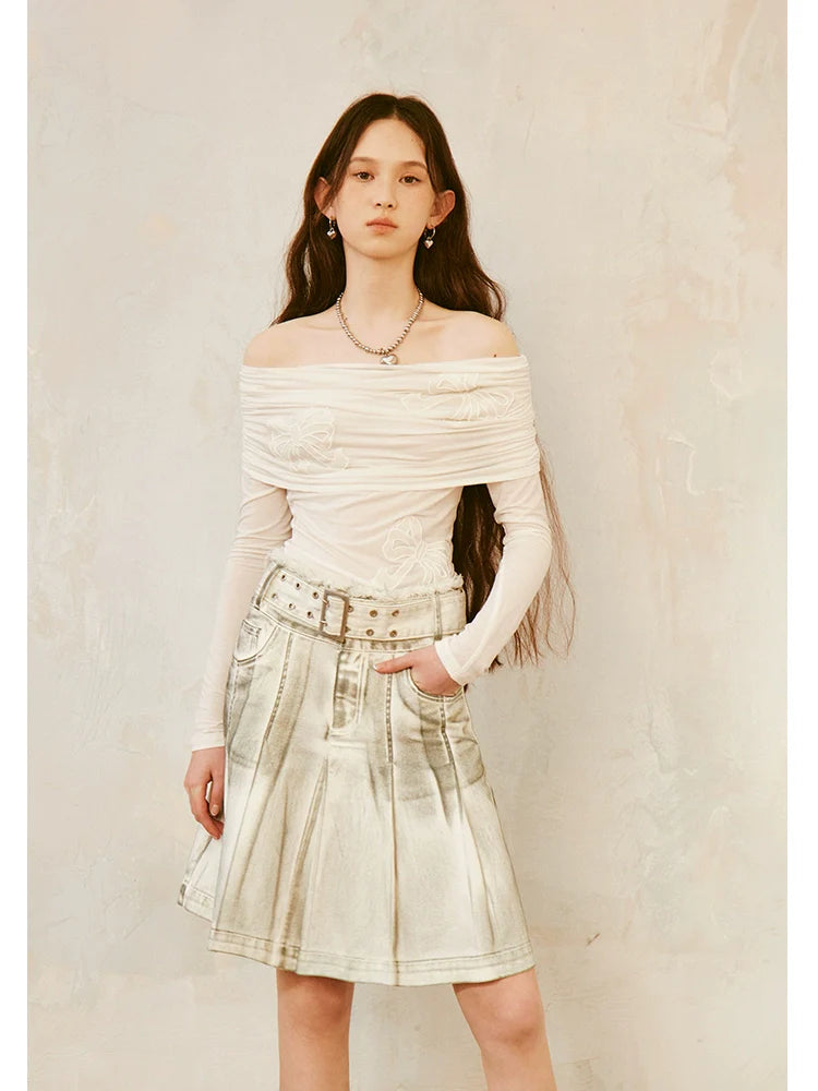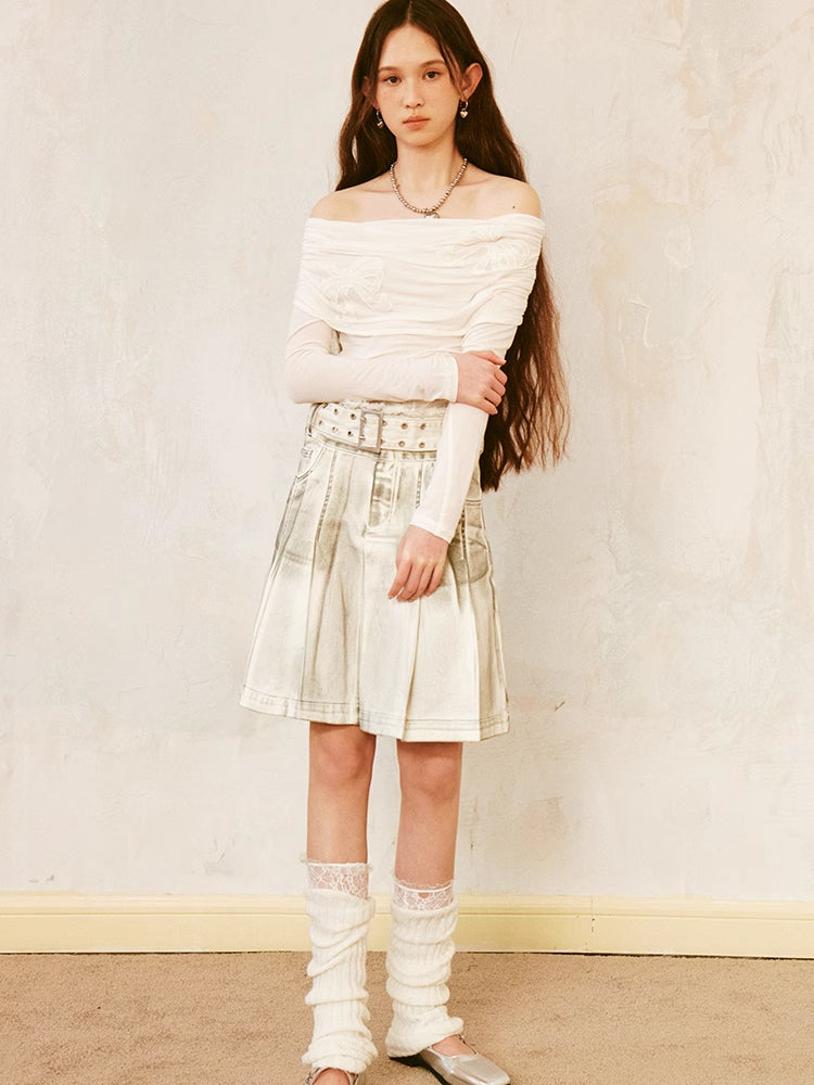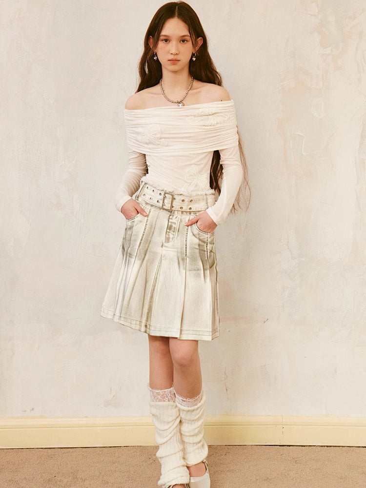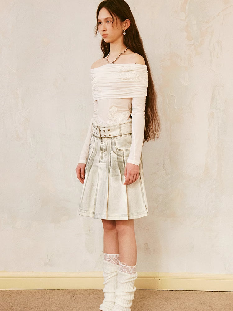 dirty rubbed color pleated skirt