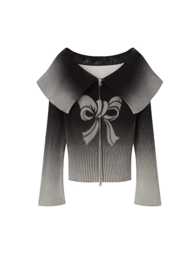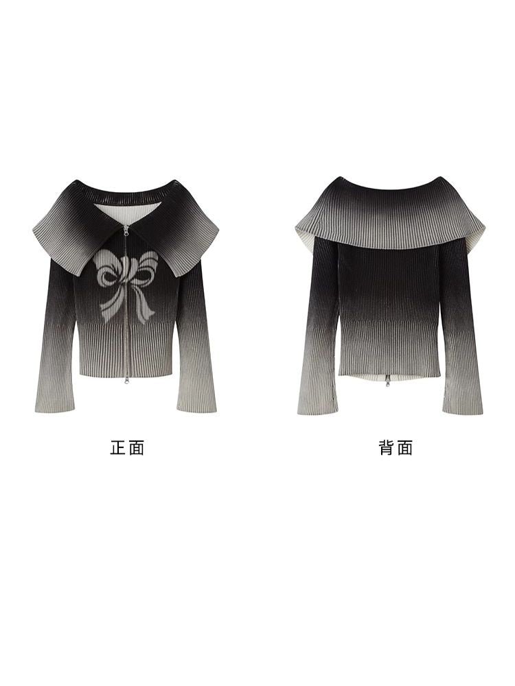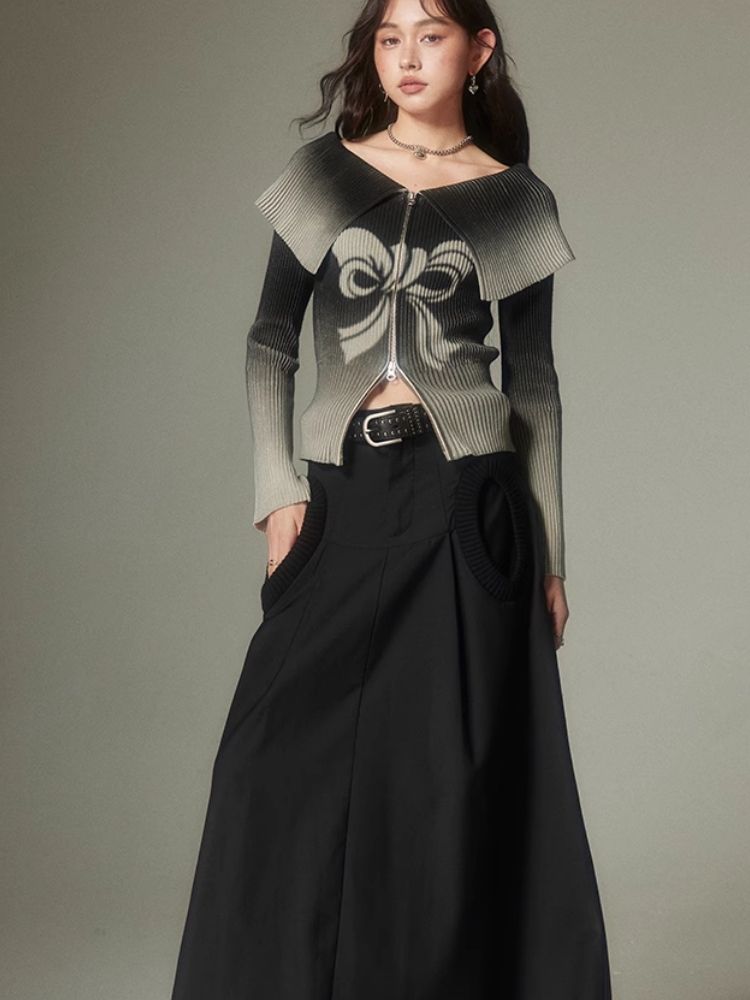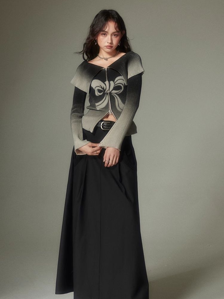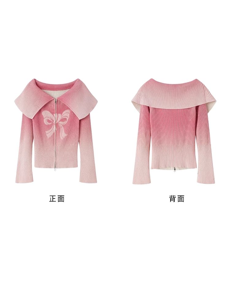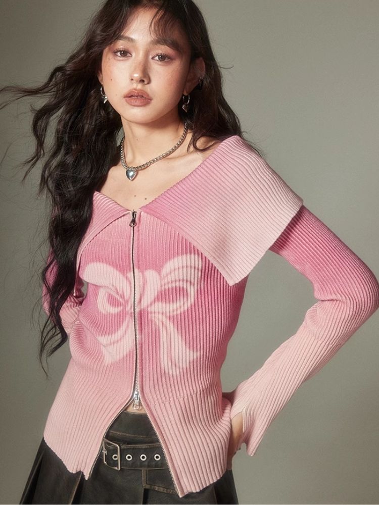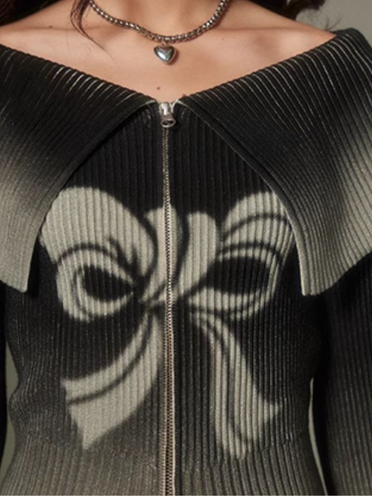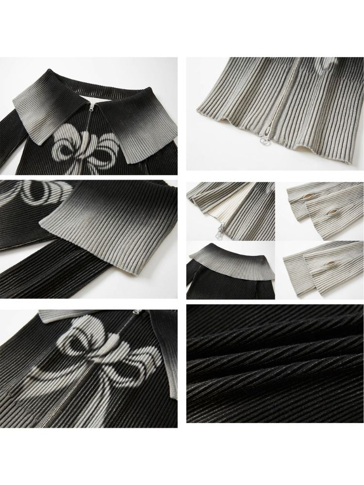 knitted gradient printing zipper sweater
