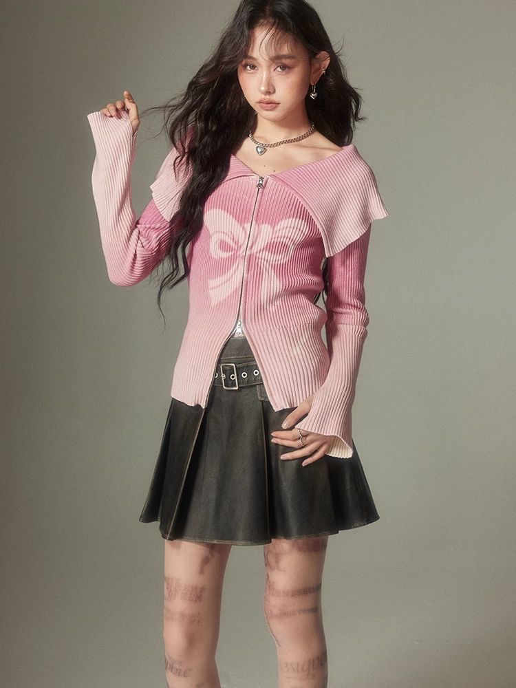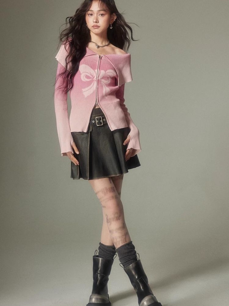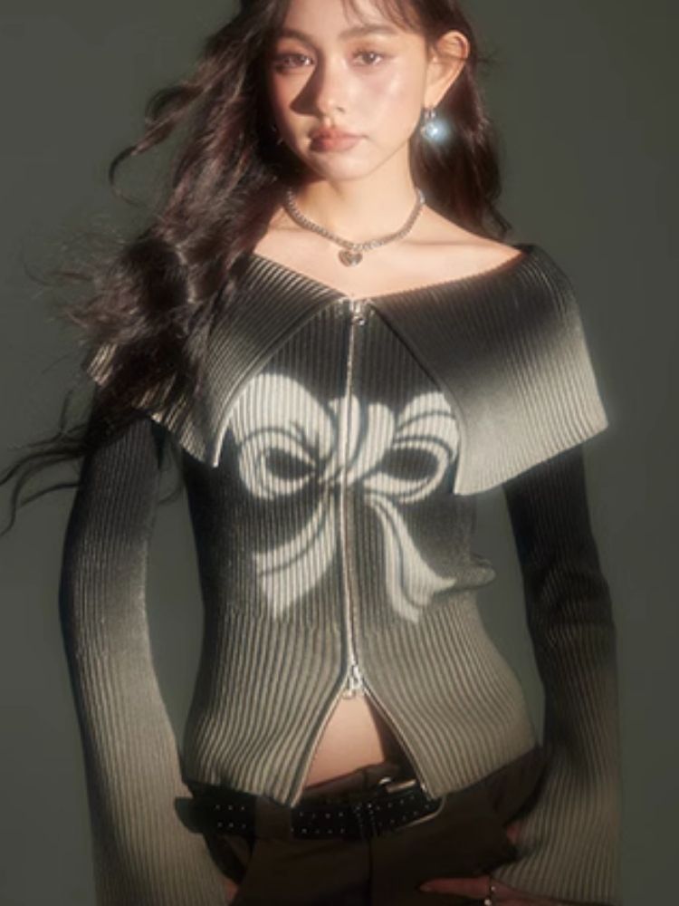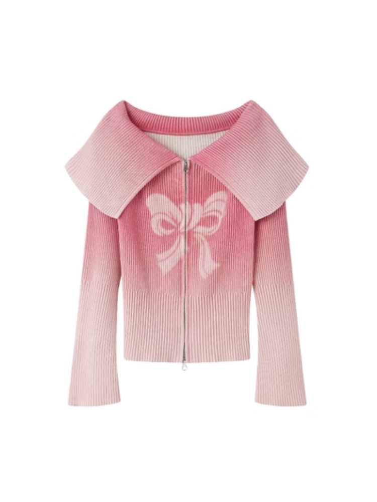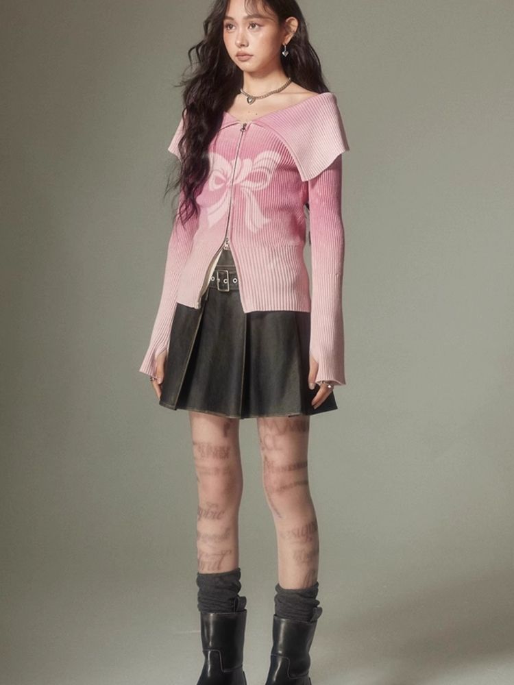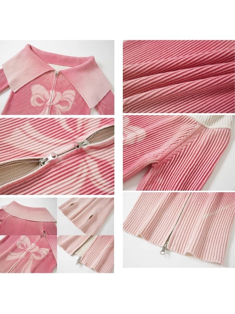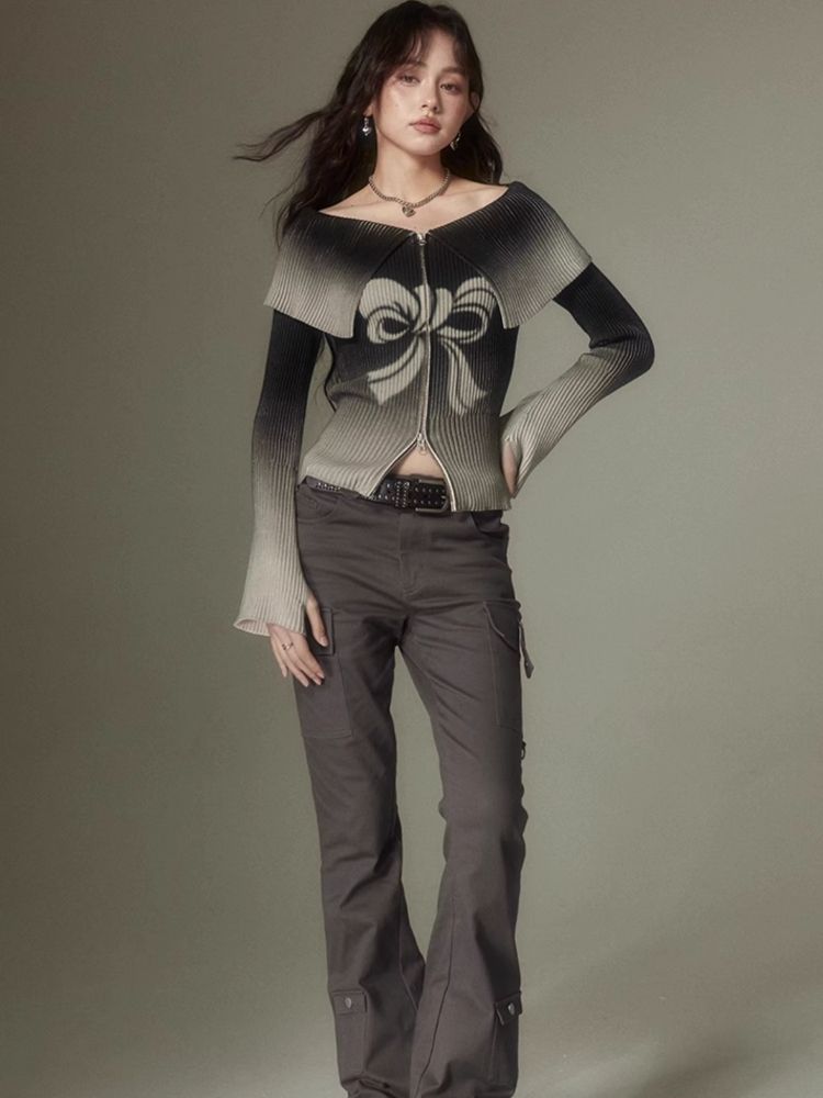 knitted gradient printing zipper sweater