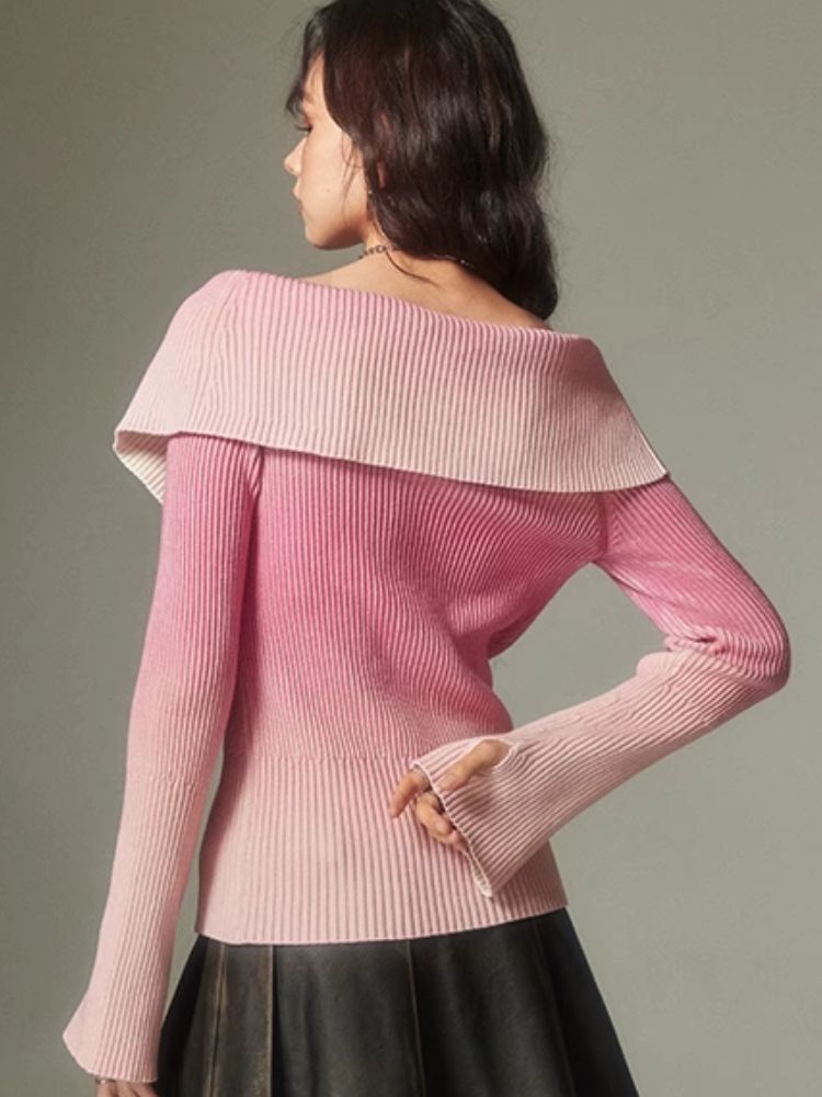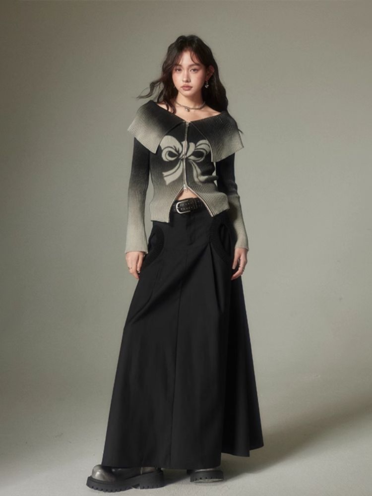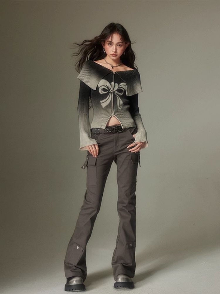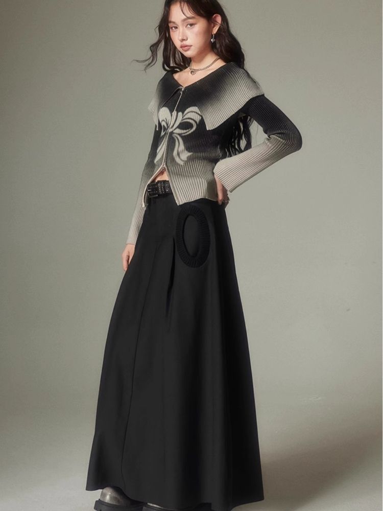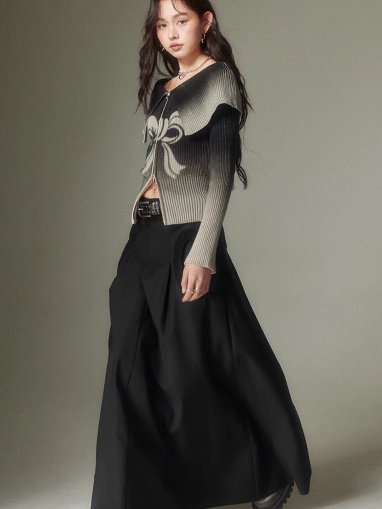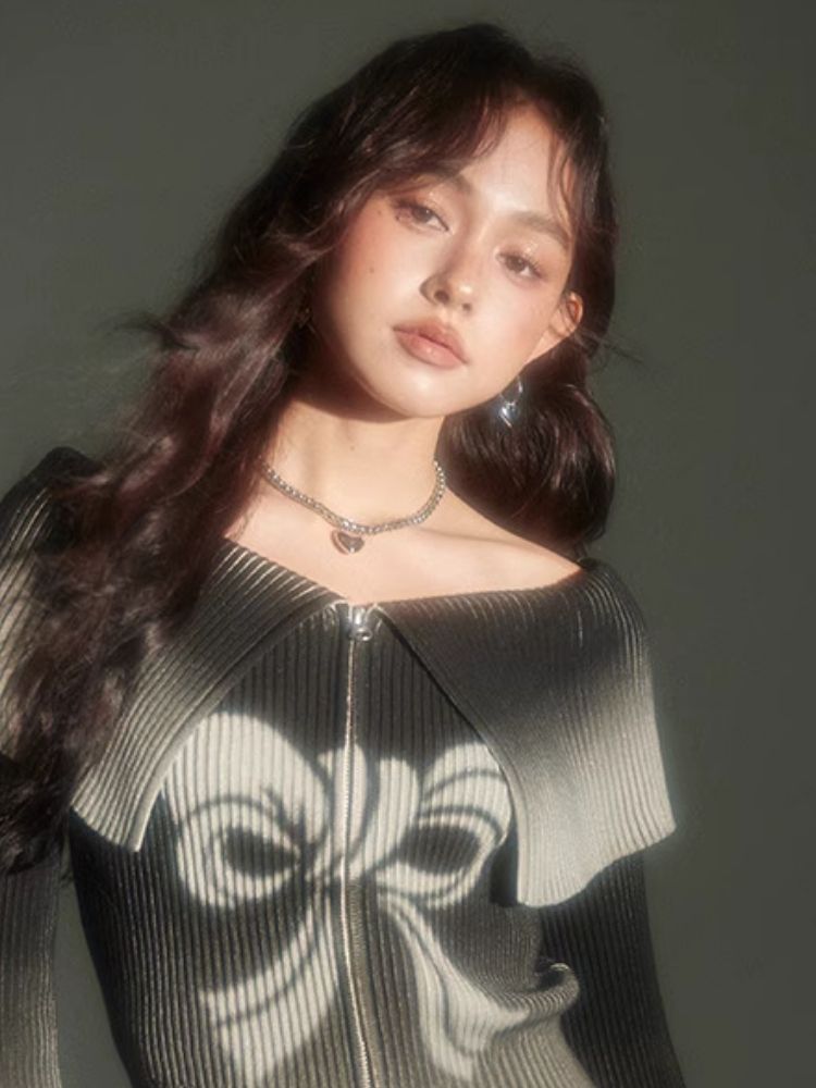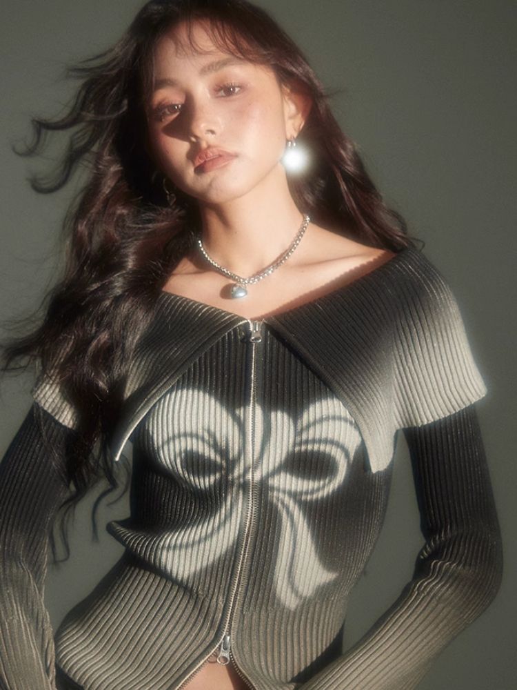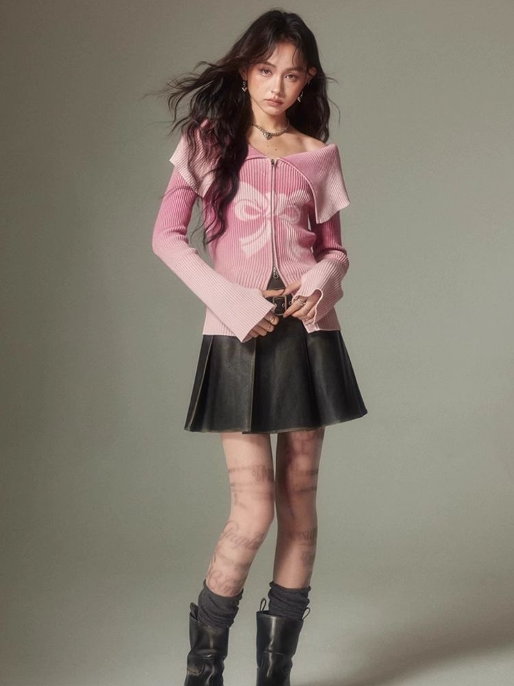 knitted gradient printing zipper sweater