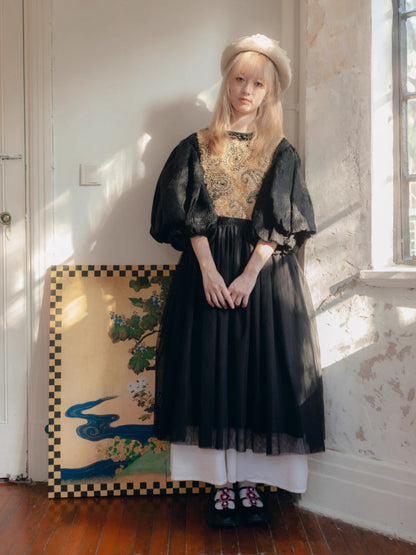 French Vintage Elegance A-Line Dress