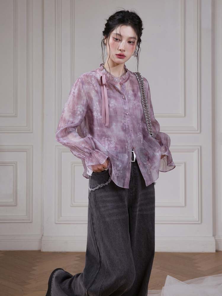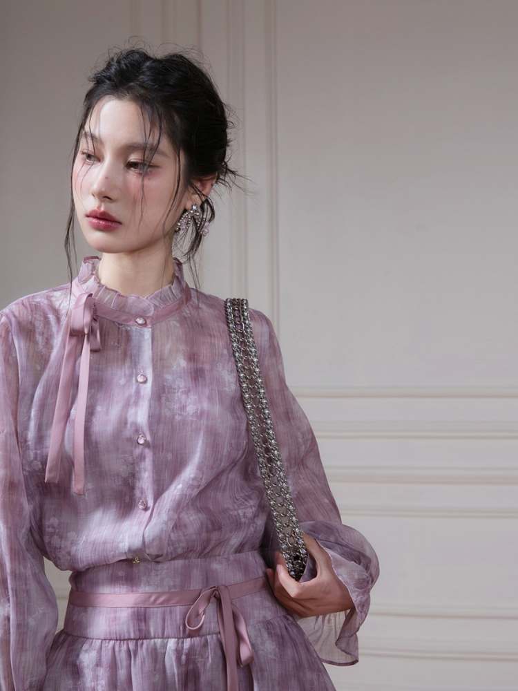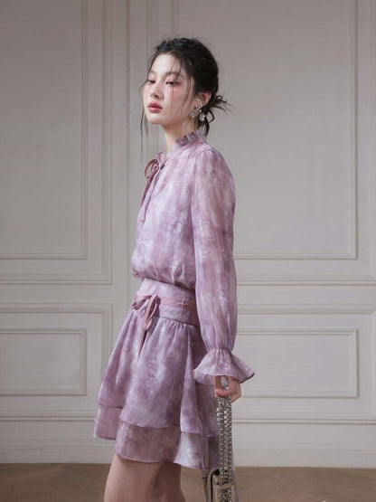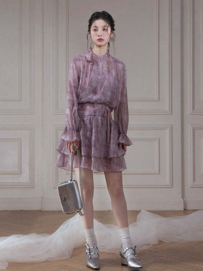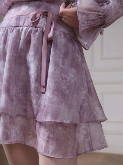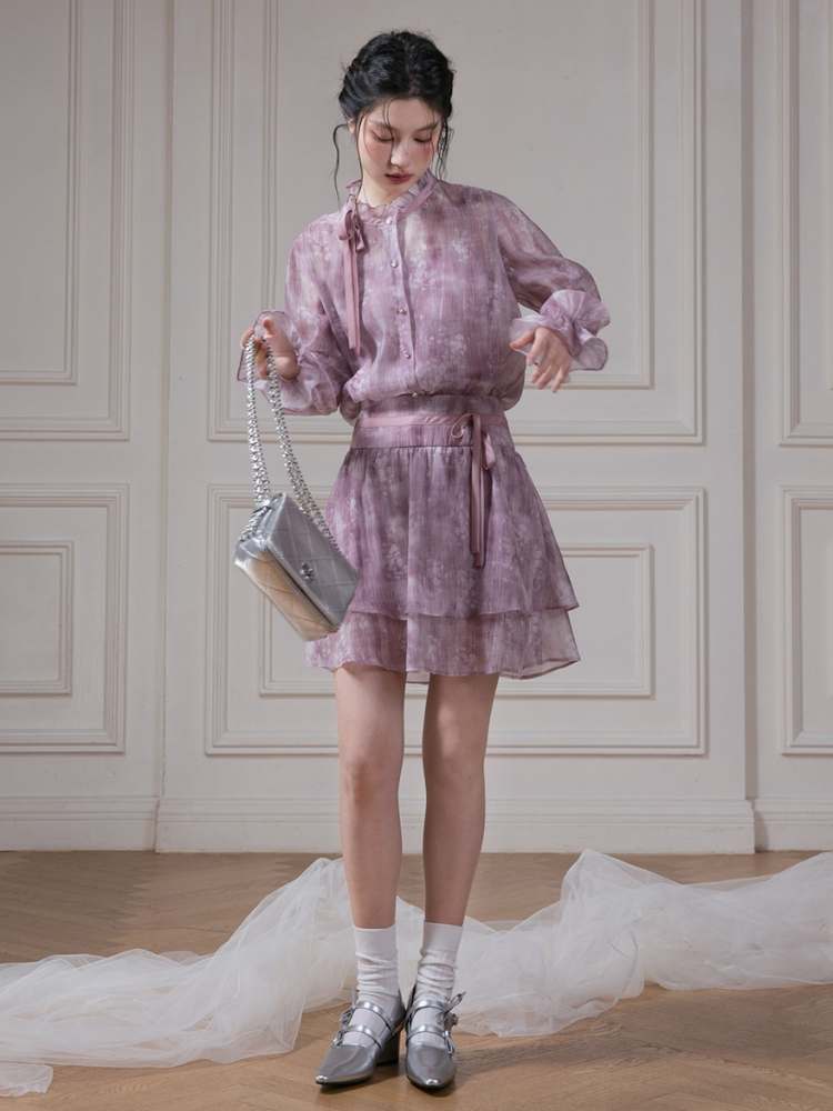 Floral Ribbon Sheer Shirt & Cami Skirt Set
