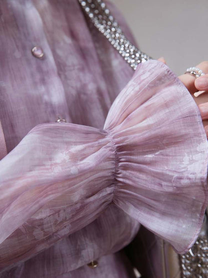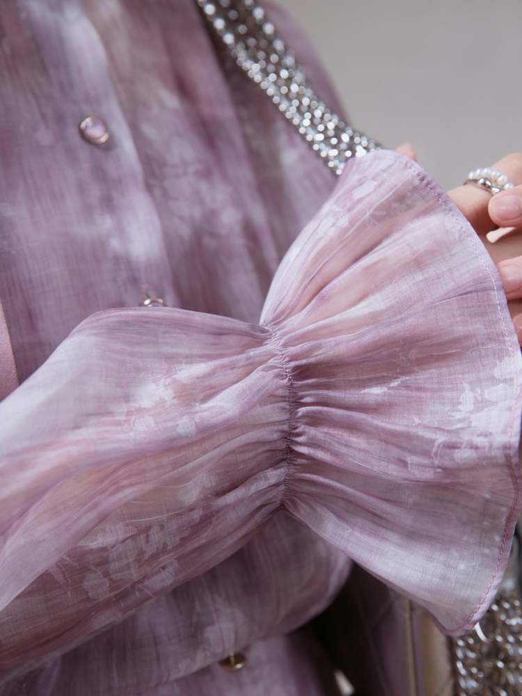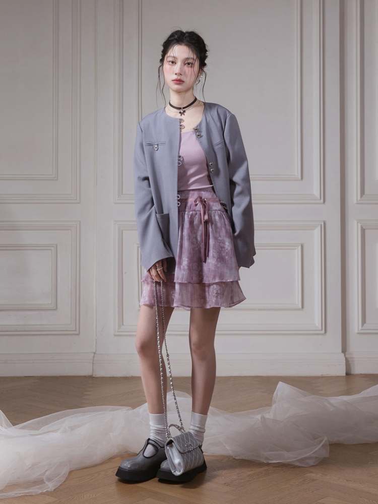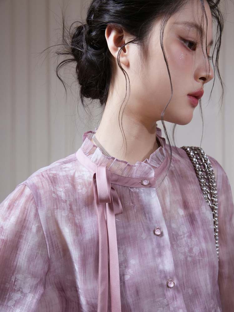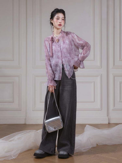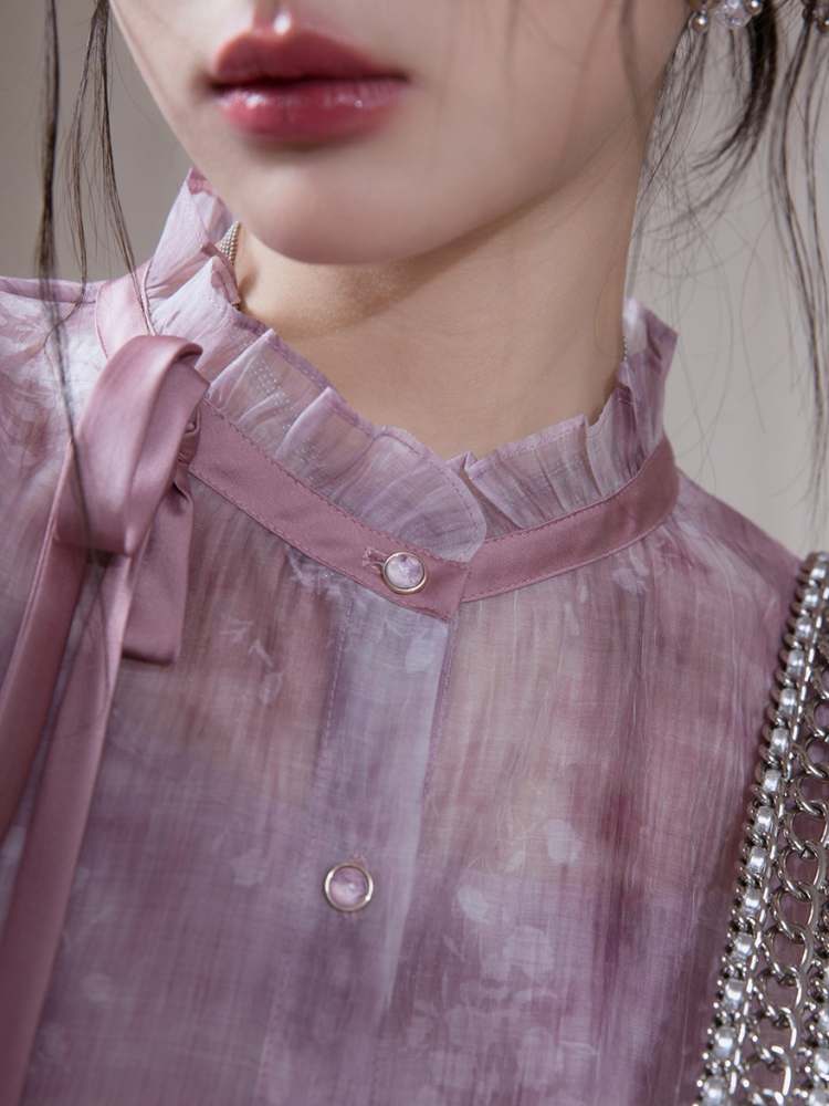 Floral Ribbon Sheer Shirt & Cami Skirt Set