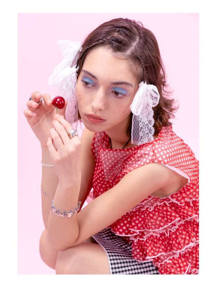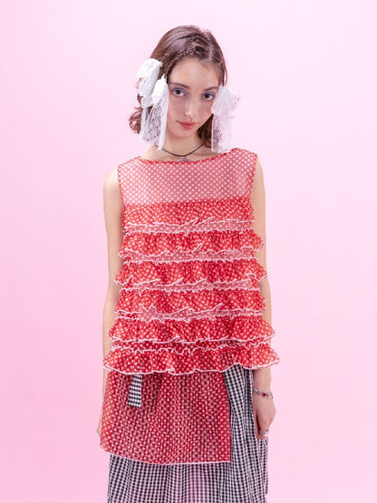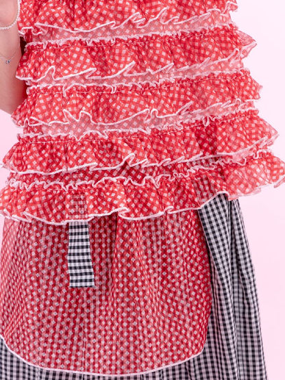 Crimson Plaid Mesh Oversized Top