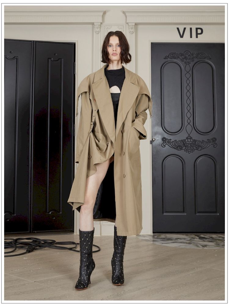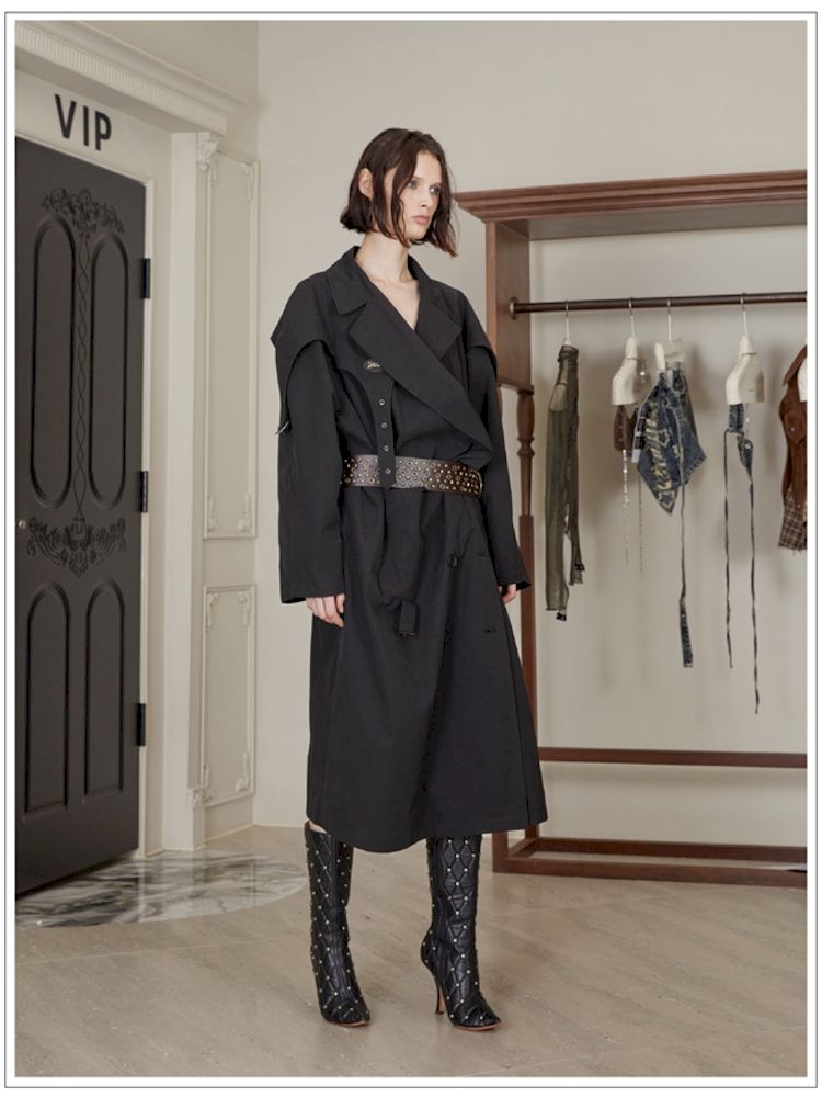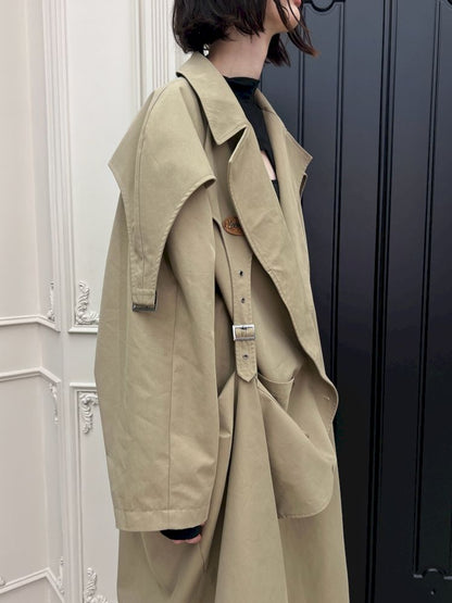 Buckle Strap Double-Breasted Trench Coat