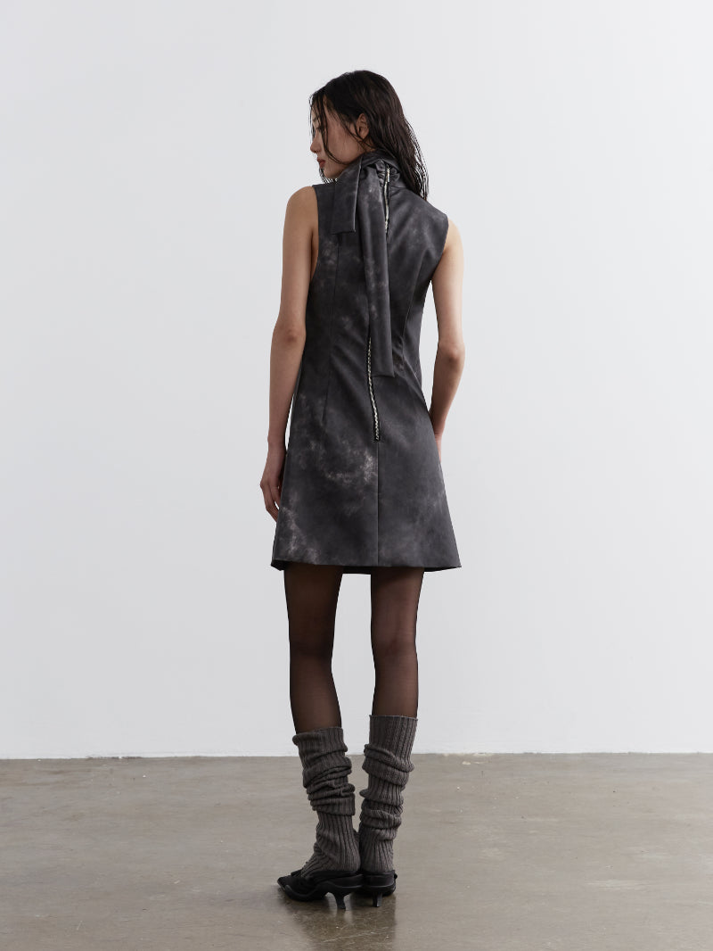 ink PU leather scarf dress